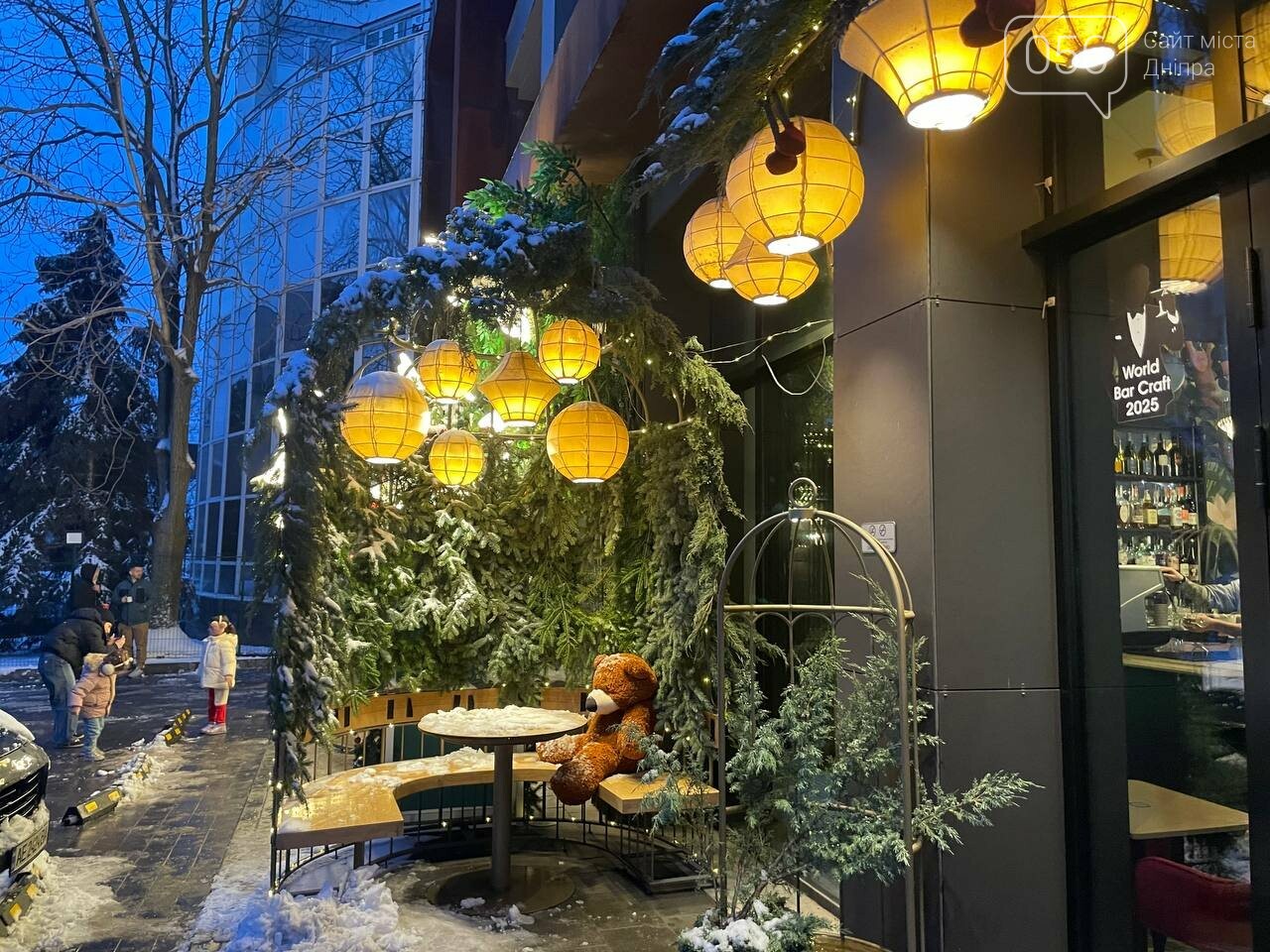 А якщо пройти буквально хвилинку-дві, то можна побачити інші локації. Поруч з площею кафе створили дивовижні ілюмінації.