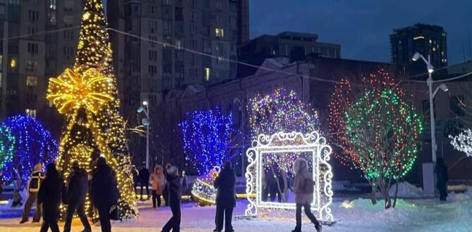 Головною точкою тяжіння площі стала новорічна ялинка з аркою. Діти із захопленням кружляють навколо, а дорослі зупиняються, аби зафіксувати ці миті на фото.
