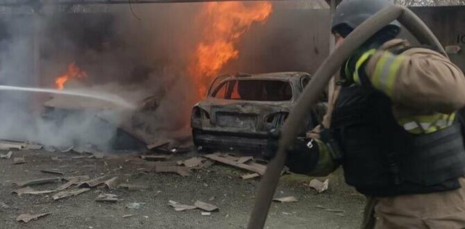 - Зайнялися автомобілі: 2 машини знищені, ще 7 – пошкоджені.