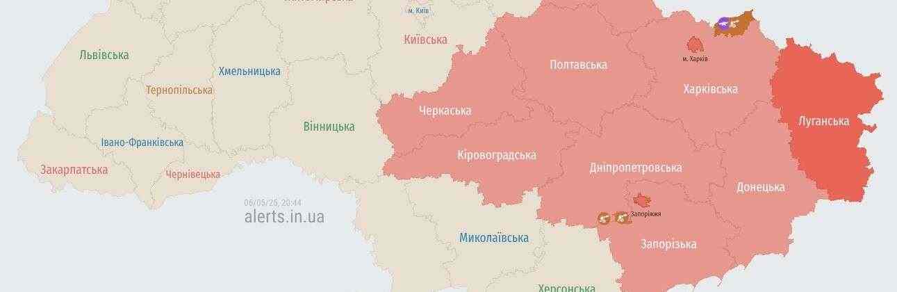 • Загроза ударних БпЛА з Південного напрямку. Група БпЛА з окупованих у напрямку Синельниківського району Дніпропетровської області.