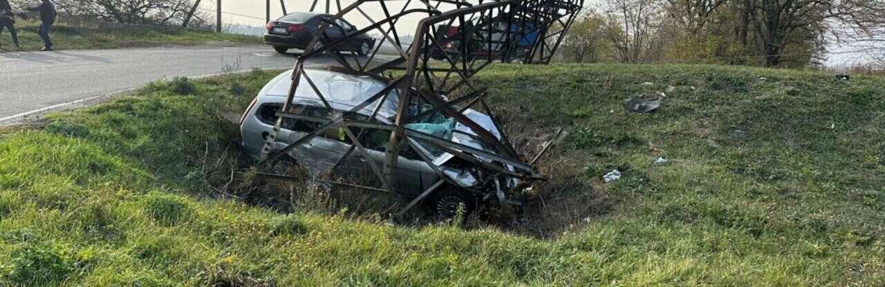 Під Дніпром автівка влетіла в опору ЛЕП.