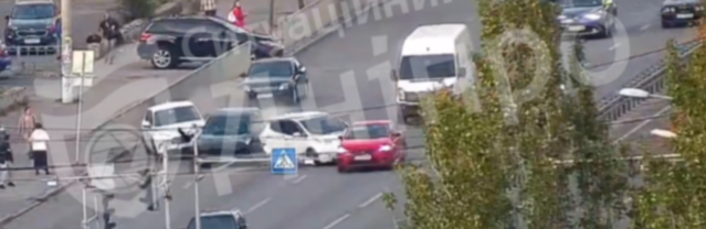 Сталося дві аварії. В районі зупинки «Донецька» водій Audi зачепив BMW. Тікаючи далі, біля ТЦ "Наша правда" він протаранив ще три автівки.