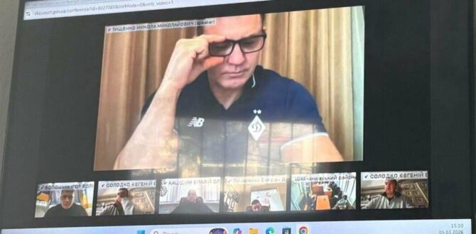 через відеозвʼязок долучилися: захисник потерпілого Ігор Волошин, захисники обвинувачених Віталій Кацідим та Євген Солодко, а також самі обвинувачені — Микола Тищенко і Богдан Писаренко.