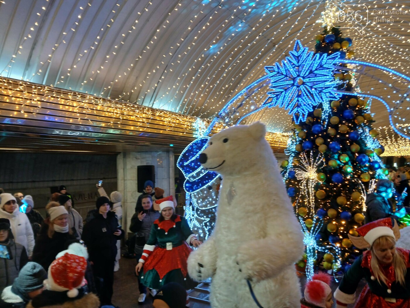 26 грудня, у Дніпрі запалили головну ялинку міста і все це відбувалося під землею. Сам захід був як для дітей, так і дорослих. Були і чарівні ельфині, і білий ведмідь, і хлопчик в образі Вєрки Сердючки. На рахунок "три", всі вони разом запалили її вогники ялинки.