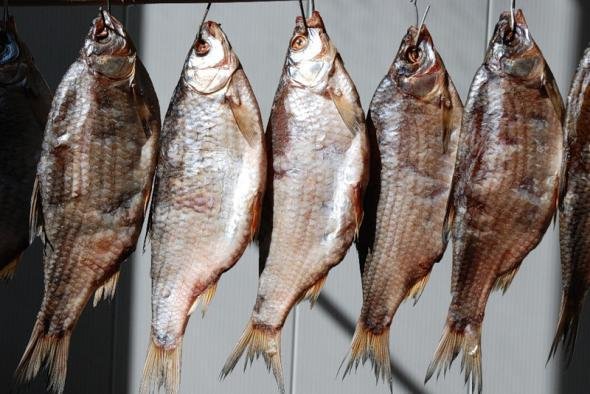 - сушену/в’ялену рибу, куплену «з рук» — на стихійних ринках, через соцмережі або з домашніх заготовок;