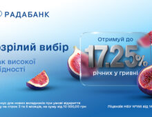 Отримуйте до 17,25% річних у гривні з депозитами від Радабанку. Спеціально для нових клієнтів: