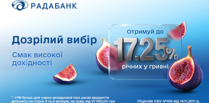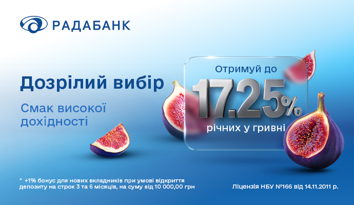 Отримуйте до 17,25% річних у гривні з депозитами від Радабанку. Спеціально для нових клієнтів: