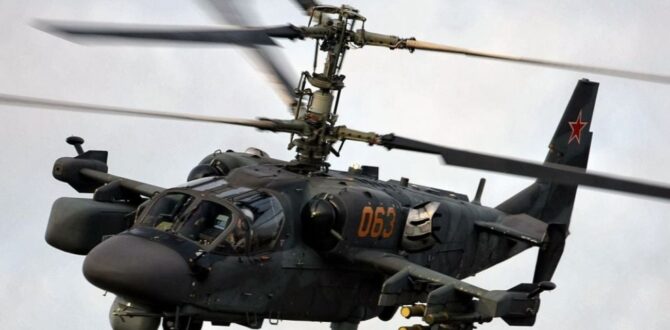 Ка-52 – це російський бойовий вертоліт, що здійснює розвідку місцевості, цілевказівки та координацію дій групи бойових вертольотів. Машина здатна вражати броньовану і неброньовану техніку, живу силу і повітряні цілі на полі бою. Перший випробувальний політ Ка-52 відбувся у 2008 році.