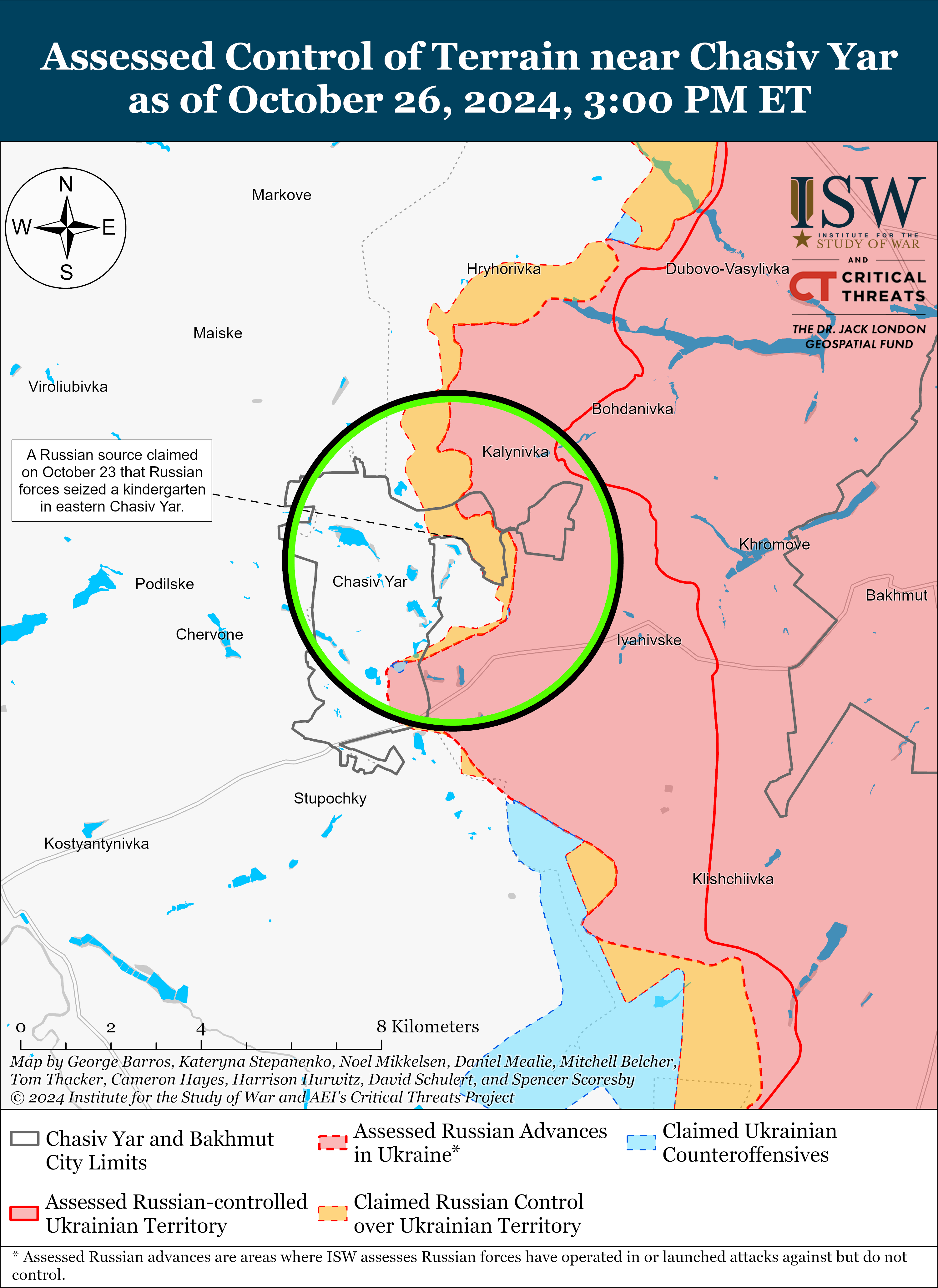 Російські війська продовжили наступальні операції в районі Часового Яру 25 та 26 жовтня, але жодних підтверджених змін на лінії фронту не було.