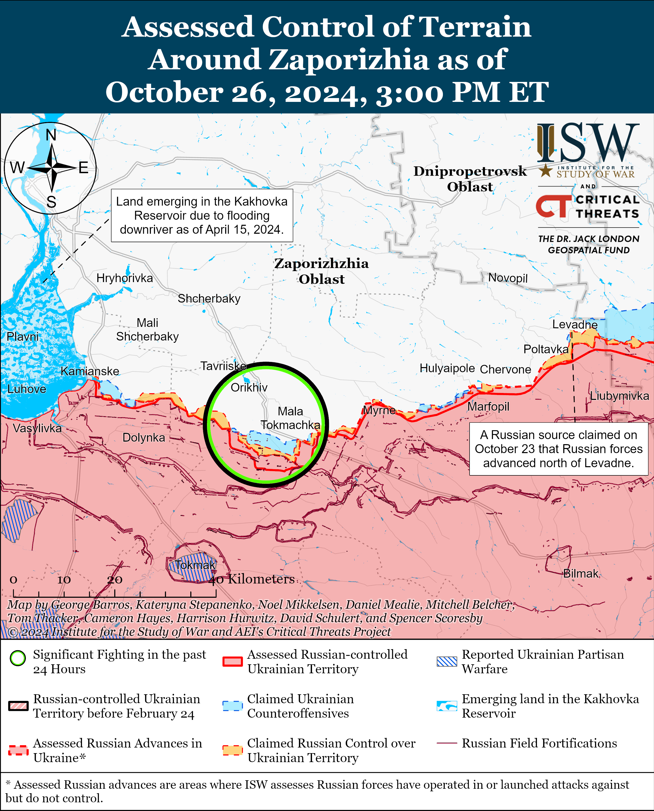 Ні російські, ні українські джерела не повідомляли про російську активність у районі кордону Донецької та Запорізької областей 26 жовтня.