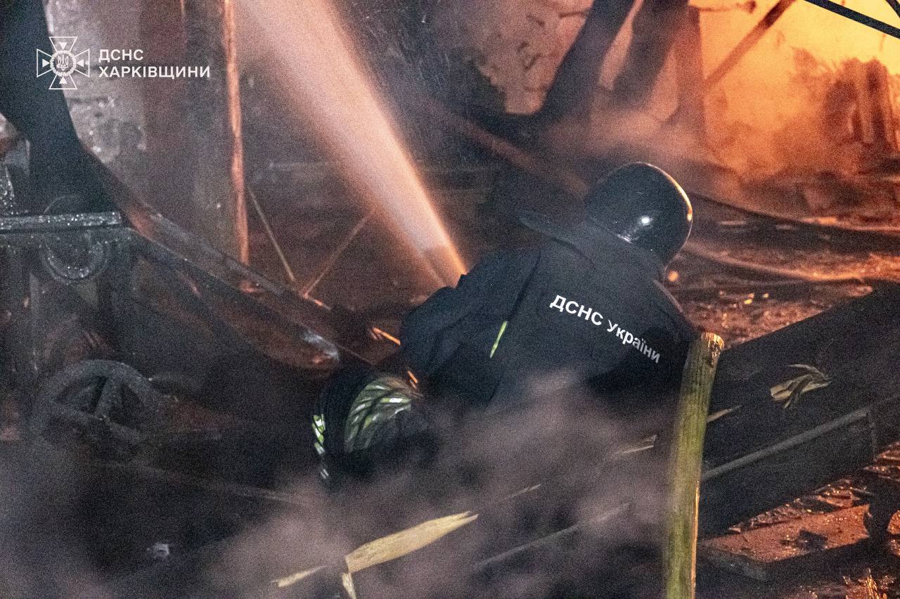 Вогонь охопив конструкції семи зруйнованих будівель, три автомобілі та територію за межами підприємства. Рятувальники оперативно прибули на місце та ліквідовували займання.