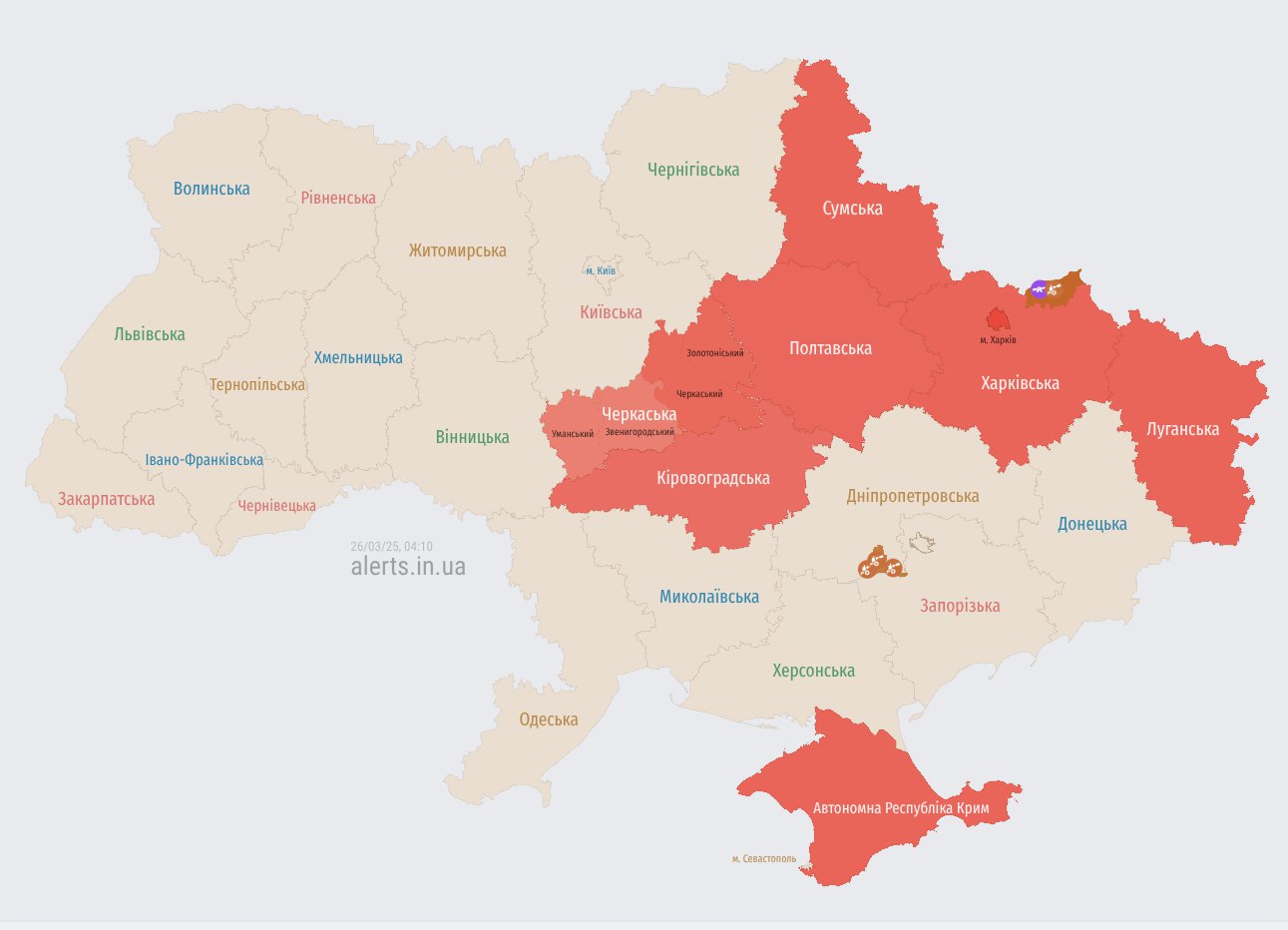 Джерело: Карта повітряних тривог України (https://t.me/povitryanatrivogaaa)