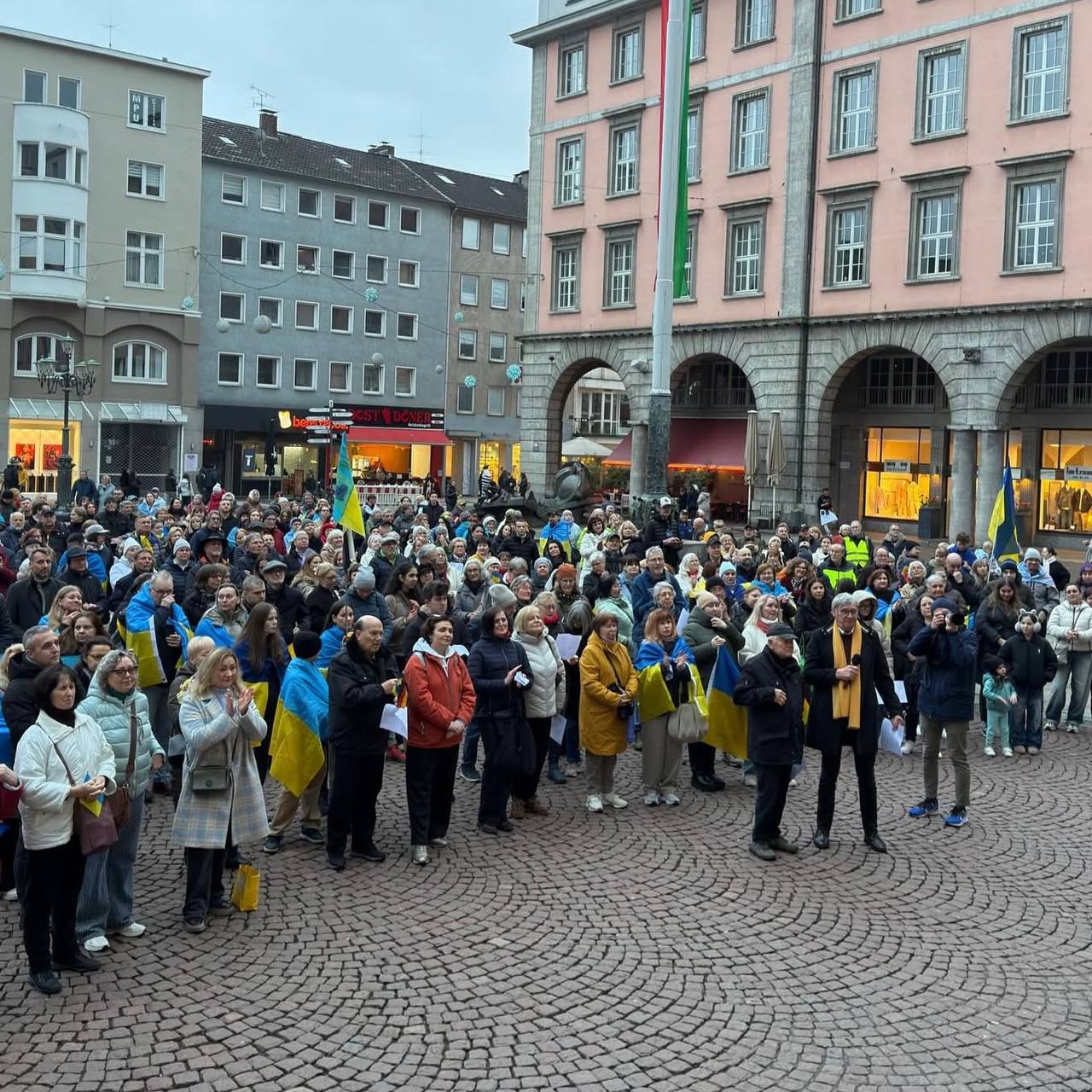 У четверту річницю повномасштабної війни громада міста-побратима Камʼянського — Вупперталя – провела мітинг солідарності на площі Беллеротхаузу та спільну молитву за Україну і Кам’янське у місцевій церкві.
